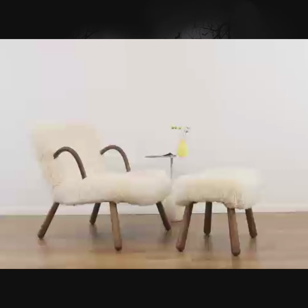 A beautiful chair with soft curves to emulate the silhouette of an open clam shell. The round armrests compliment the overall feel of the seat, which tilts slightly back for optimal comfort. It's upholstered in a luscious imitation lambs wool which caters to an incredibly warm and comfortable seat.